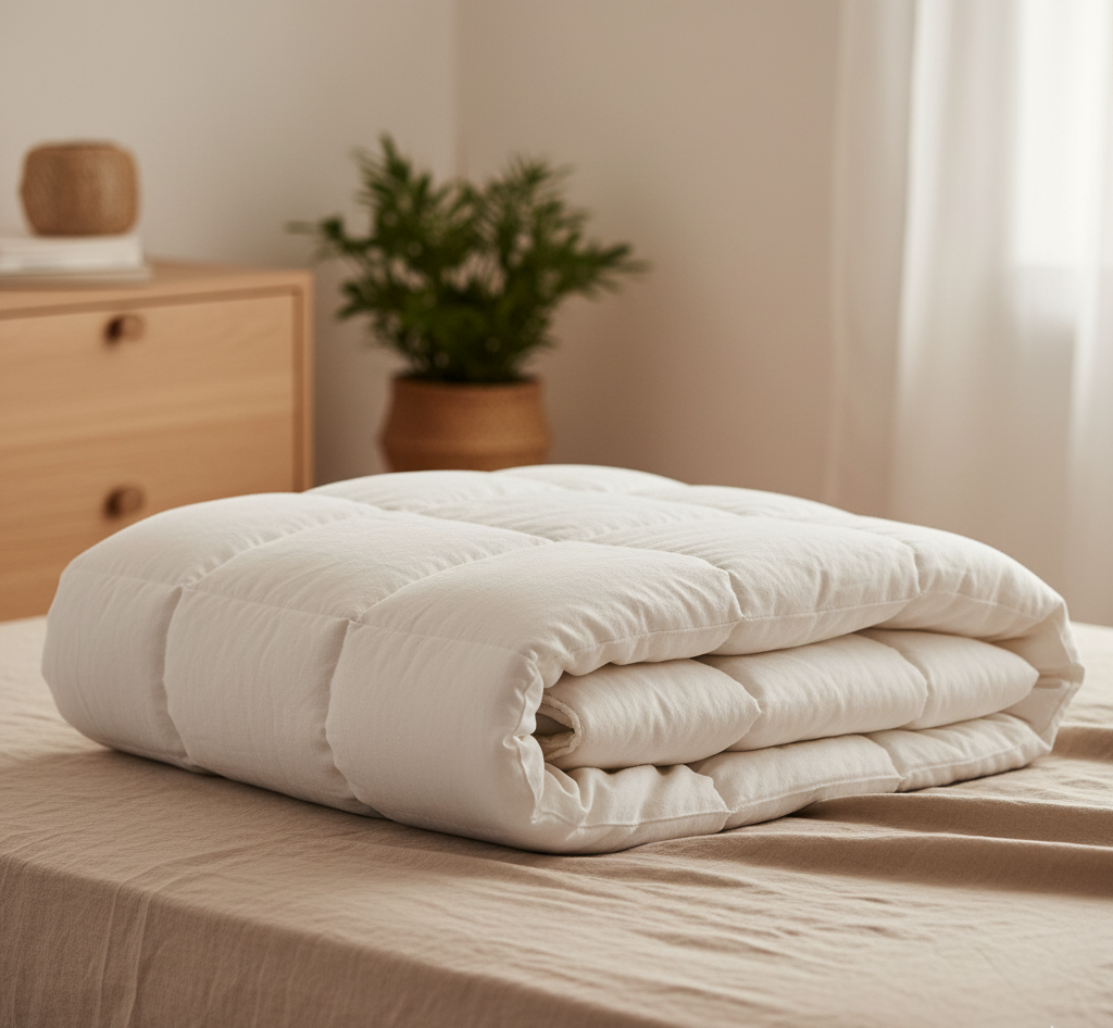 Diese handgefertigte Decke sorgt das ganze Jahr über für ein ausgeglichenes, gesundes Schlafklima – kühl im Sommer, wohlig warm im Winter.