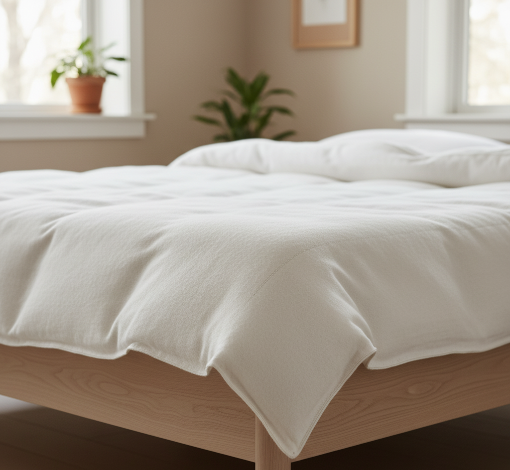 Jede Decke wird in Europa handgefertigt und mit natürlichem Thermalwasser gereinigt – ohne Chemikalien, ohne Zusätze, nur reine Natur. Sie ist plastikfrei, hypoallergen und unterstützt ein trockenes, ausgeglichenes Schlafklima.