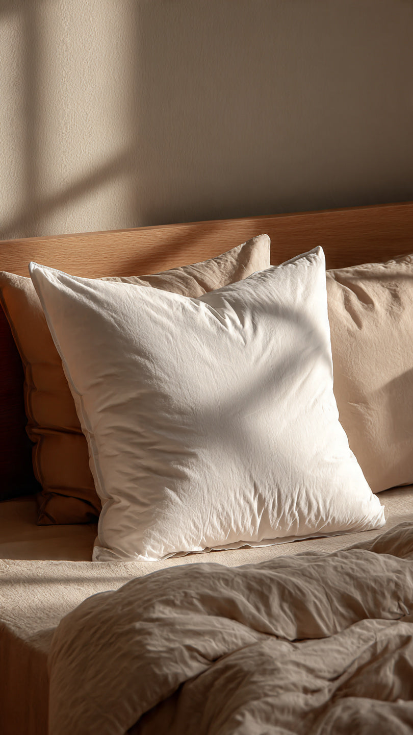 Dieses handgefertigte Kissen unterstützt Kopf und Nacken sanft, während es ein ausgeglichenes, atmungsaktives Schlafklima schafft.