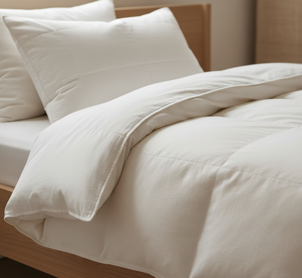 Erlebe den Unterschied eines natürlichen Schlafklimas – warm im Winter, frisch im Sommer, atmungsaktiv das ganze Jahr über.