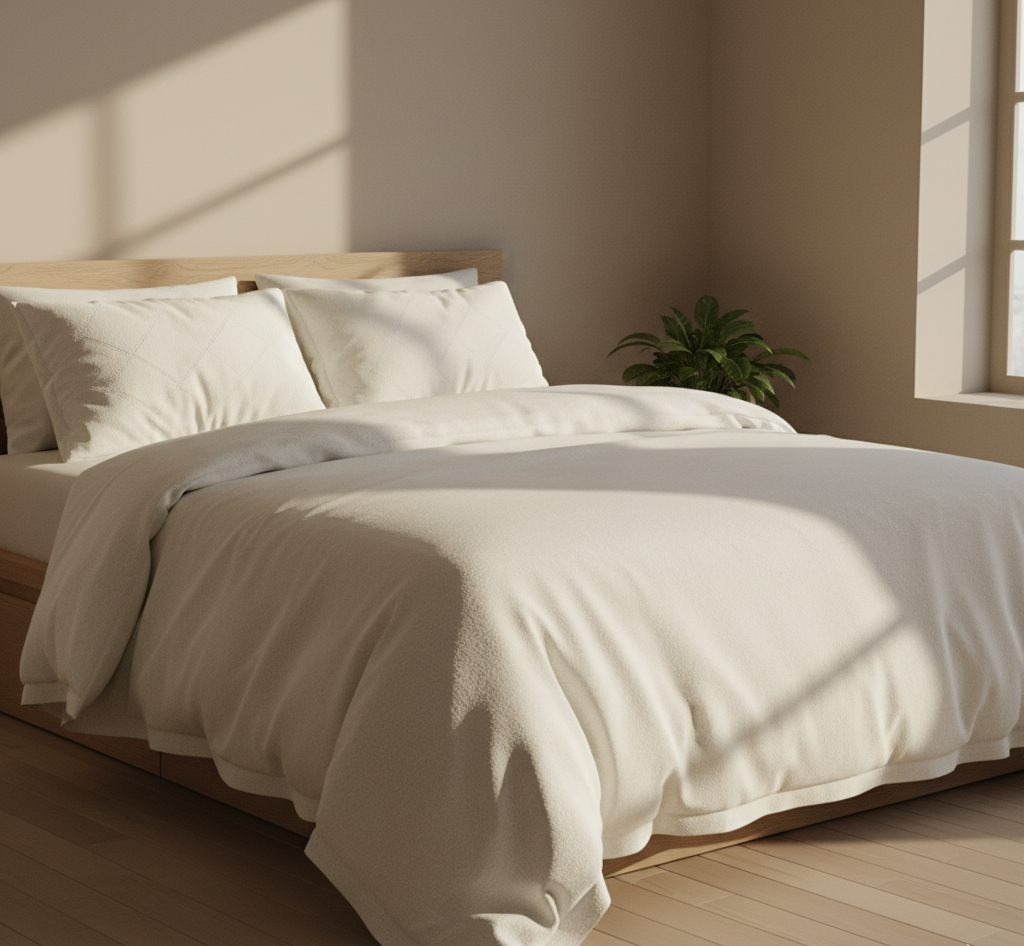 Königlicher Komfort in Naturqualität. Das WohlSet King aus 100 % Merinowolle & Baumwolle bietet luxuriösen Schlafkomfort – atmungsaktiv, temperaturausgleichend und nachhaltig handgefertigt in Europa.